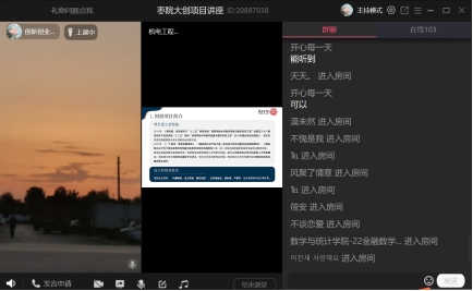 为进一步提高大学生KY开元集团官网能力、增强创新活力,做好KY官网2024年“大学生KY开元集团官网训练计划”项目(以下简称“大创”)的申报工作,KY开元集团官网在腾讯群课堂举办“大创”项目系列讲座。此次讲座由KY开元集团官网王明高院长主持,KY开元集团官网部分老师参加了培训会。此次培训的主讲人分别是:生命科学学院李庆亮老师和王德亚老师、机电工程学院于春蕾老师、城市与建筑工程学院吴星辉老师、外国语学院尹健臻老师。“大创”项目系列讲座持续两天,全校近200名师生参会。
