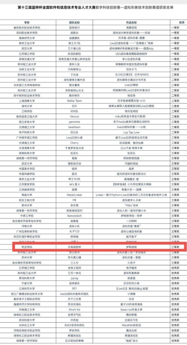 近日,第十三届蓝桥杯全国软件和信息技术人才专业大赛组织的数字科技创新赛——虚拟形象技术创新赛于线上进行最终答辩,我院光电蓝桥杯团队荣获三等奖,实现了本赛事历史性的突破。