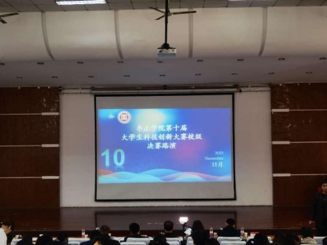 为培养广大青年学子的创新思维能力,在KY开元集团官网实践活动与学科竞赛中增长智慧才干,坚定执着追理想,实事求是闯新路, 2023年11月22日下午,枣庄学院第十届大学生科技创新大赛校级决赛路演在文科报告楼举行。学校邀请了校内外十位有专业经验的专家评委(现场五位、线上五位)参加评审,全校共有31个项目团队参与路演。