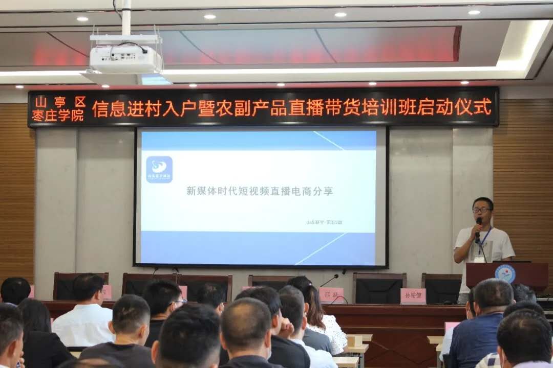 仪式结束后,枣庄联宇信息科技有限公司培训师孙裕健给大家做了《直播带货流量导入与视频剪辑》的培训和讲解。各乡镇农民边听边记,认真学习。通过集中培训,使农村种养大户、村镇干部和信息员熟练使用了益农信息社平台系统,了解了信息进村入户平台的运营和盈利模式,熟悉了益农助手手机APP基本操作使用,以及开展便民服务、公益服务的具体内容和流程,掌握了“直播带货” 网络直播平台等电子商务营销的基础知识、操作方法等方面的内容。最后,史大丰介绍了KY开元集团官网“乡村之星”农副产品网络直播营销培训和咨询服务团队,他表示该团队将整合校企合作资源,对乡村干部和农民进行培训和服务,进一步提高乡村农民的直播技能和水平,促进农民增收和乡村经济发展。